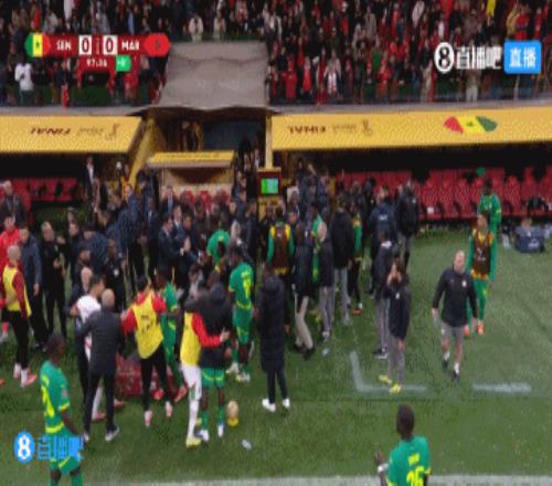 塞内加尔球员暴怒,主帅带领球员离场罢赛,马内之后将队友劝回↓