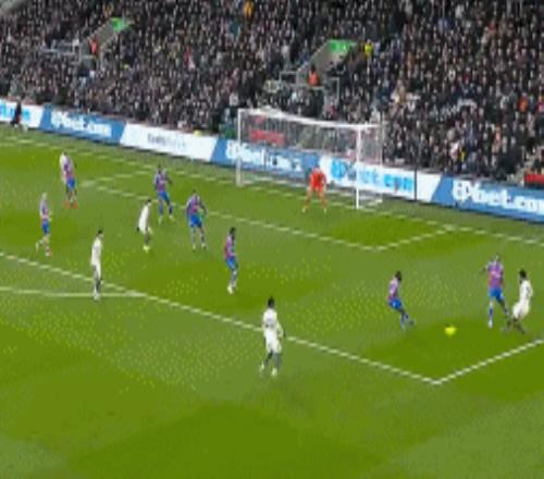 第27分钟,水晶宫手榴弹战术,萨尔小禁区铲射稍稍打偏。