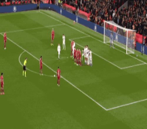 第50分钟,萨拉赫突破制造任意球,自己亲自操刀主罚,皮球直挂死角。